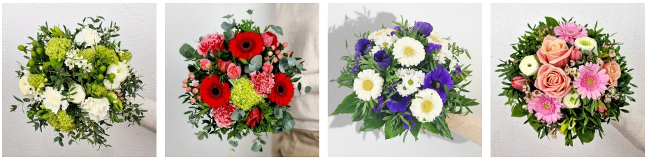 Die Website bietet detaillierte Produktinformationen und Fotos, sodass Kunden genau sehen können, wie die Sträuße gestaltet sind und welche Blumen enthalten sind.