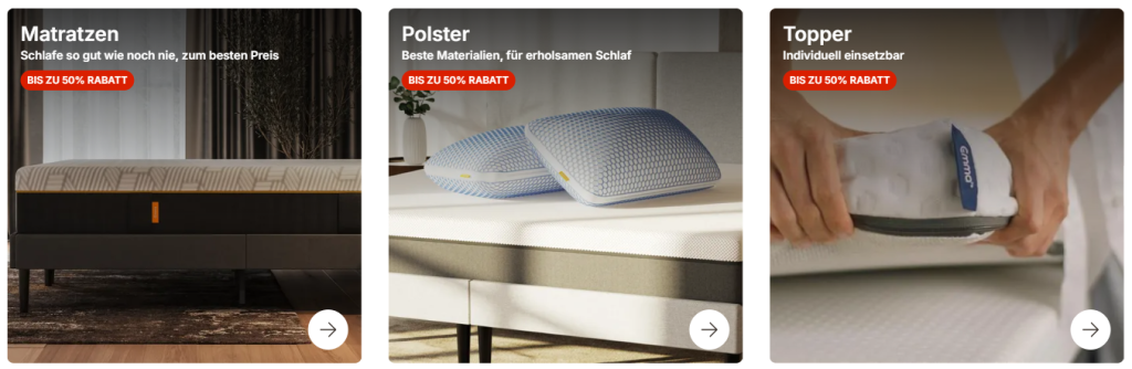 - Betten und Boxspring-Systeme: Komplette Schlafsysteme, die Design mit Funktionalität verbinden, können direkt über emma-matratze.at konfiguriert werden.
