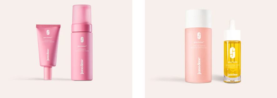 Das Herzstück der Produktwelt von Juno & Me ist der Fokus auf die Gesundheit der Hautbarriere. Ein herausragendes Beispiel hierfür ist der eigens entwickelte „glow below“-Komplex. Diese Formel kombiniert pflegende Inhaltsstoffe wie Aloe Vera, Traubenkernöl und Hanfsamenöl, um die Haut nach der Rasur oder bei Trockenheit intensiv zu beruhigen.