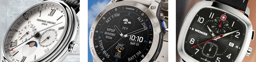 • Accessoires und Uhrenzubehör: Ersatzarmbänder, Aufbewahrungsboxen, Uhrenbeweger und mehr, um die Pflege und Präsentation der Sammlung zu vervollständigen.