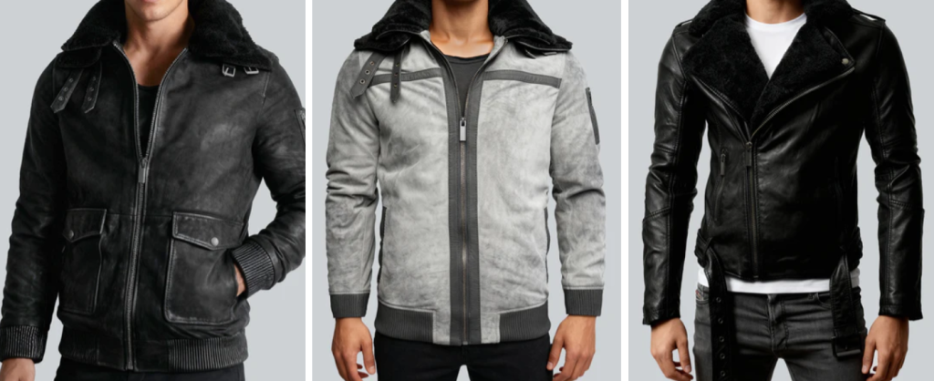- Herrenkollektion: Das Herzstück bilden Bikerjacken, cleane Stehkragen-Modelle und wattierte Winterlederjacken. Auch extravagante Stücke mit Diamond-Stitching oder im Retro-Look sind fester Bestandteil.